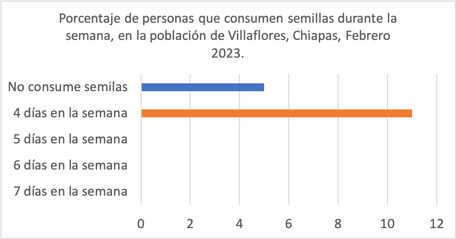 11 de 16 personas consume semillas durante 4 días durante la semana, 5 personas No consumen estas.